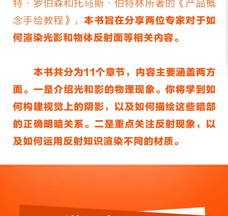 基於作者斯科特·羅伯森和托馬斯·伯特林所著的《產品概念手繪教程》,本書旨在分享兩位專家對於如何渲染光影和物體反射面等相關內容。
