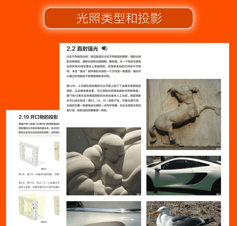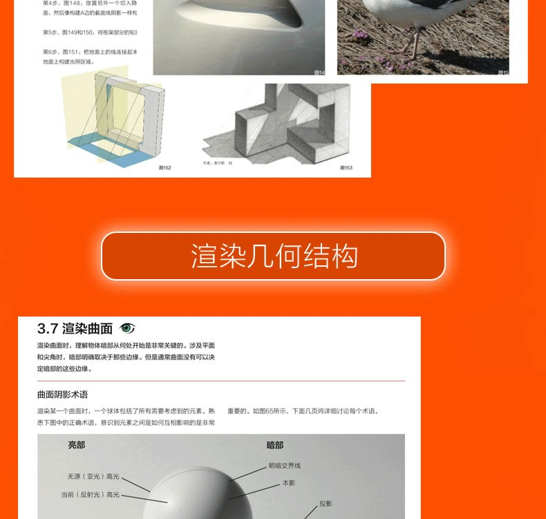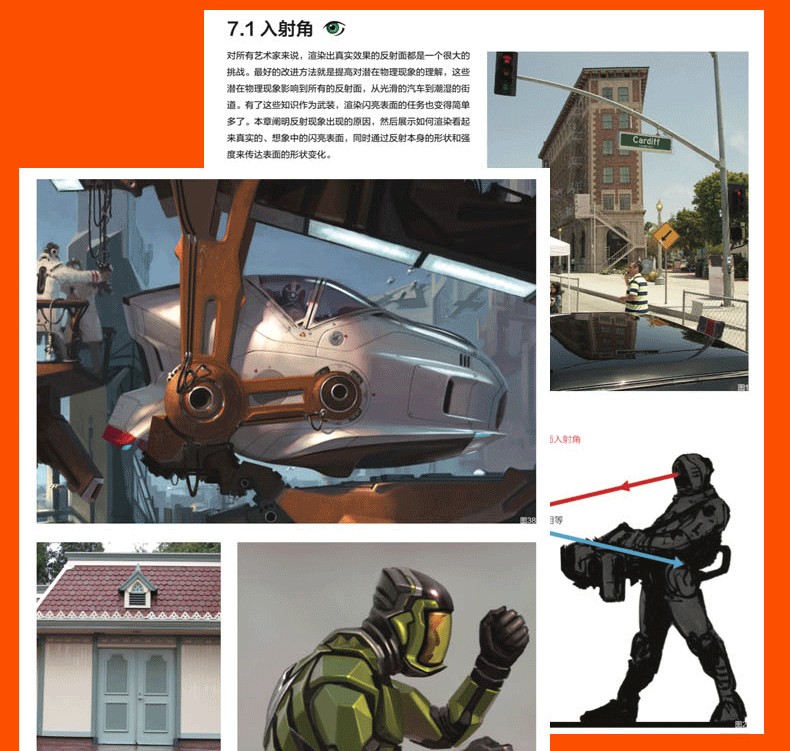 本書共分為11個章節,內容主要涵蓋兩方面。一是介紹光和影的物理現象。你將學到如何構建視覺上的陰影,以及如何描繪這些暗部的正確明暗關係。二是重點關注反射現象,以及如何運用反射知識渲染不同的材質。